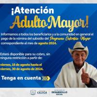 La Secretaría de Desarrollo Social a través de la Dirección de Equidad y Familia, continua con el pago del programa Colombia Mayor del mes de agosto.