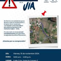 Por este motivo, se realizará el cierre total de la vía en la Calle 3 Sur, entre la Carrera 2 y la Variante Cajicá – Chía.