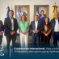 La alcaldesa Fabiola Jácome, el gestor social Carlos Nieto y el secretario de Desarrollo Económico, Alejandro Grosso Sierra, visitaron la Embajada de El Salvador, donde fueron recibidos por el embajador Germán Banacek Álvarez Oviedo, acompañado por la ministra consejera Amy Raquel Chicas Polanco y el ministro consejero Norberto E. Roque.