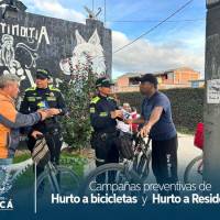Cumpliendo con la meta 290 de nuestro PDM, llevamos a cabo las campañas preventivas “Hurto a bicicletas” y “Hurto a Residencias” en los sectores El Bebedero, Canelón y Granjitas, bajo el liderazgo de la Policía Nacional de Cajicá.