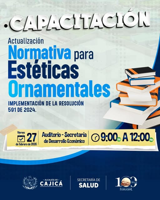La Administración Municipal invita a los profesionales del sector estético a participar en la capacitación sobre actualización normativa para estéticas ornamentales, un espacio orientado a fortalecer los conocimientos y garantizar el cumplimiento de la normativa vigente.