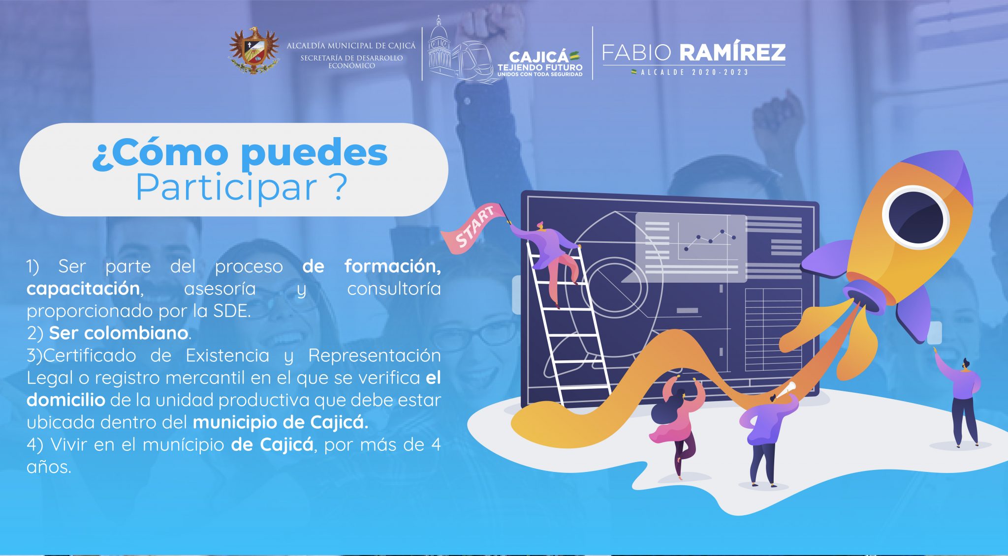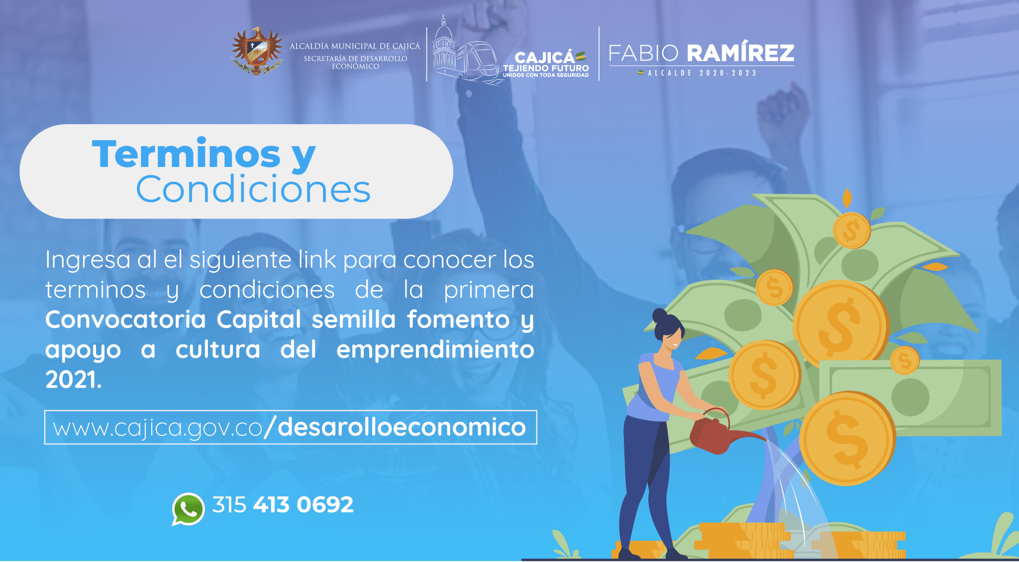 Promueve la innovación e incentiva el fortalecimiento empresarial a través del apalancamiento financiero para emprendedores y empresarios que desarrollen su actividad dentro de cualquier sector económico de Cajicá.