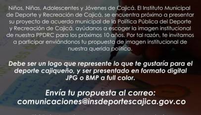 Insdeportes, invita a toda la comunidad a enviar su propuesta para la imagen de la PPDRC para los próximos 10 años. Envíanos tu logo hasta el próximo 25 de agosto al correo: comunicaciones@insdeportescajica.gov.co recuerda que este debe representar lo que te gustaría para el deporte Cajiqueño. Participa y obtén un…