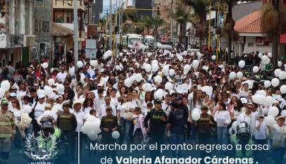La Administración Municipal acompañó la marcha liderada por la familia, amigos y ciudadanos que, con esperanza y solidaridad, alzaron su voz por el pronto regreso de Valeria Afanador Cárdenas. Si alguien la ha visto o tiene información sobre su paradero, puede comunicarse de inmediato a la línea de emergencia 123.Recompensa:…