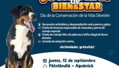 La Secretaría de Ambiente y Desarrollo Rural invita a la Jornada de Bienestar Animal. Participa en las actividades gratuitas. Fecha: jueves, 12 de septiembre. Hora: 2:30 p.m. Lugar: Sector Aguanica – Patolandia. ¡Te esperamos!