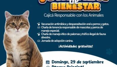 La Secretaría de Ambiente y Desarrollo Rural invita a la Jornada de Bienestar Animal. Participa en las actividades gratuitas. Fecha: Domingo, 29 de septiembre Hora: 9:00 a.m. Lugar: Parque Principal ¡Te esperamos!