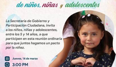 Únete a la mesa de participación de niños, niñas y adolescentes, el próximo jueves, 14 de marzo de 2024, a las 3:00 p.m. en el Despacho Municipal. ¡Contribuye al pacto por la niñez!
