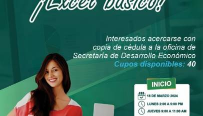 La Secretaría de Desarrollo Económico te invita a unirte al Curso de Excel Básico, si estás interesado(a) puedes acercarte con una copia de tu cédula a esta dependencia. ¡Ten presente que solo hay 40 cupos!