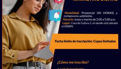 #HoraDeCapacitarte || La Administración Municipal y la Secretaría de Desarrollo Económico invitan a la comunidad a participar del curso de formación en Marketing Digital. Inscríbete a través del siguiente formulario https://forms.gle/qnRWMnZ2HNDCRLCg7 Cupos limitados #CajicáTejiendoFuturo #UnidosConTodaSeguridad