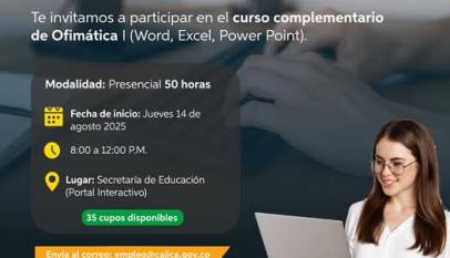 Fortalezca sus habilidades con este curso complementario y presencial. Día: Martes Hora: 9:00 a. m. Lugar: Casa de la Cultura 1 Inicio: 2 de agosto de 2025 Duración: 48 horas presenciales Requisito: Estar inscrito en la plataforma Sofía Plus Cupos limitados: 35 disponibles Meta 225 del PDM, Cajicá Ideal. Inscríbase…