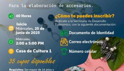 La Secretaría de Desarrollo Económico y el SENA invitan al curso de alambrismo, una formación práctica y creativa con duración de 40 horas. Inicio: miércoles 25 de junioHorario: 2:00 p.m. a 5:00 p.m.Inscripciones: en las instalaciones de la Secretaría de Desarrollo Económico.