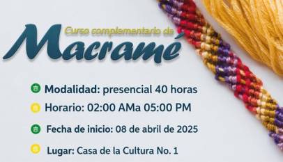 La Secretaría de Desarrollo Económico y el Servicio Nacional de Aprendizaje (SENA) invitan a participar en el curso complementario de macramé. ¿Cómo inscribirse?Acérquese a la Secretaría de Desarrollo Económico con los siguientes documentos: Cédula en formato PDF Correo electrónico Número de celular Edad Nota importante: debe estar inscrito en la…