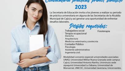 #Convocatoria || La Secretaría de Educación invita a los jóvenes a realizar su periodo de prácticas universitarias en alguna de las secretarías de la Alcaldía Municipal de Cajicá. Envía tu hoja de vida al siguiente correo: direducacioncontinua@cajica.gov.co Conoce los perfiles requeridos