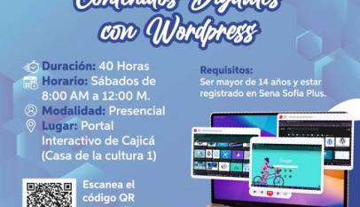 La Secretaría de Educación y el Sena te invitan a certificarte en Contenidos Digitales con WordPress. Si quieres potenciar tus habilidades en el mundo digital, inscríbete en el curso complementario de 40 horas, en modalidad presencial. Todos los sábados 8:00 a.m. a 12:00 m. Portal Interactivo de Cajicá (Carrera 4#3-07,…