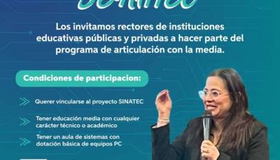 La Secretaría de Educación invita a los rectores de instituciones educativas publicas y privadas a hacer parte del programa de articulación media. Condiciones de participación de los Colegios en la estrategia de articulación con la educación media SENATEC: Querer vincularse al proyecto SENATEC Ser colegio público o privado Tener educación…