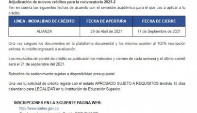 #EducaciónSuperior || La Secretaría de Educación de Cajicá invita a postularse a la Alianza Cajicá Icetex para el segundo periodo de 2021. Ten en cuenta los requisitos y realiza la pre-inscripción del 07 al 12 de julio a través del siguiente enlace: https://solicitudes.icetex.gov.co/…/public/propios.sm/08 #CajicáTejiendoFuturo #UnidosConTodaSeguridad