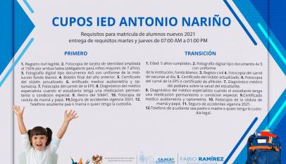 #IMPORTANTE || La Secretaría de Educación de Cajicá y la IED Antonio Nariño informan sobre la ampliación de cupos escolares para transición y primaria. Conoce los requisitos aquí 👇 #CajicáTejiendoFuturo #UnidosConTodaSeguridad