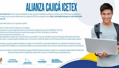 La Secretaría de Educación de Cajicá informa: Se encuentra abierta la adjudicación de créditos de la Alianza 4 x una opción de vida hasta el 17 de septiembre de 2021. Si deseas conocer más, ingresa a los siguientes enlaces: Gobernación de Cundinamarca https://cutt.ly/qbYgC8W ICETEX https://portal.icetex.gov.co/…/HomeEstudiante/alianzas #CajicáTejiendoFuturo