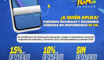 Se modificaron las fechas para presentar y pagar la declaración anual del Impuesto de Industria y Comercio (ICA) correspondiente a la vigencia 2025, para personas naturales y sucesiones ilíquidas no responsables de IVA. Aproveche los descuentos por pronto pago:15% de descuento hasta el 17 de abril de 202610% de descuento…