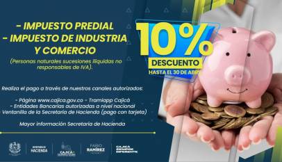 #Recuerda || La Secretaría de Hacienda invita acceder al beneficio del 10% descuento en el pago antes del 30 de abril del impuesto predial e impuesto de industria y comercio. ¡Comparte esta información con tus familiares y amigos! #CajicáTejiendoFuturo #UnidosConTodaSeguridad #CajicáSiempreDiferente #SoyCajicá