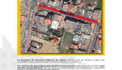 Realizaremos trabajos para mejorar la infraestructura del municipio. Calle 7 (Cra 6 a Cra 4)5 de febrero | 9:00 p. m. Planea tu ruta.Usa vías alternas.