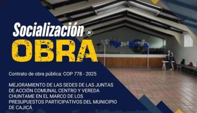 La Administración Municipal invita a la comunidad a participar en la jornada de socialización del proyecto de mejoramiento de las sedes de las Juntas de Acción Comunal del Centro y Chuntame. Este espacio permitirá conocer los detalles de las obras que beneficiarán a la comunidad y resolver inquietudes sobre su…