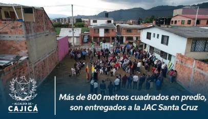 Hoy la comunidad del sector Santa Cruz recibió oficialmente un predio de más de 800 metros cuadrados, destinado a la construcción de su futuro salón comunal. La alcaldesa Fabiola Jácome, en compañía del Concejo Municipal de Cajicá, su equipo de gobierno, la Junta de Acción Comunal de Santa Cruz y…