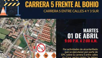 La Secretaría de Infraestructura y Obras Públicas informa a la comunidad que se adelantarán trabajos en la carrera 5, a la altura del parque Luis Carlos Galán, también conocido como El Bohío. Agradecemos la comprensión de los ciudadanos y solicitamos transitar con precaución por la zona mientras se ejecutan las…