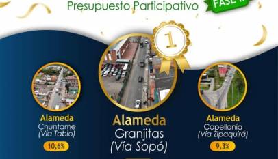 Los cajiqueños eligieron la Alameda Granjitas (Vía Sopó) como el proyecto ganador. Este es un logro de todos y cada uno de ustedes que alzaron su voz con su voto. ¡Agradecemos a toda la comunidad que fue partícipe! Ahora, a trabajar juntos para hacerlo realidad. Dando cumplimiento a la Meta…
