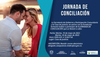 #CasaDeJusticia || La Secretaría de Gobierno y Participación Comunitaria te invita a participar en la jornada de conciliación que se llevarán a cabo durante el mes de mayo en la Casa de la Justicia de Cajicá. ¡Participa! #CajicáTejiendoFuturo #UnidosConTodaSeguridad #SoyCajicá #CajicáSiempreDiferente