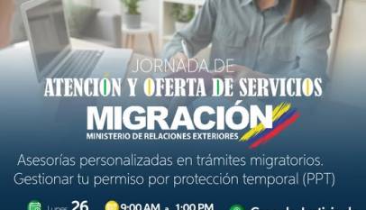 La Secretaría de Gobierno y Participación Ciudadana invita a la Jornada de Servicios Migratorios, un espacio donde la comunidad podrá acceder a los siguientes servicios: Asesoría gratuita en trámites migratorios. Entrega de Permisos por Protección Temporal (PPT) para población extranjera. Atención personalizada y orientación legal. Meta 134 del PDM, Cajicá…