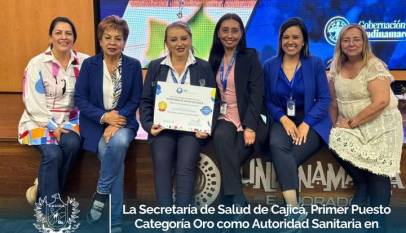 La Secretaría de Salud de Cajicá ha sido reconocida con el Primer Puesto Categoría Oro como Autoridad Sanitaria de Cundinamarca, un logro que refleja el compromiso y el trabajo en equipo por la salud de nuestra comunidad.