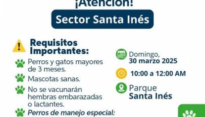 Protege a tus mascotas con la jornada gratuita de vacunación antirrábica. Fecha: Domingo 30 de marzo de 2025Hora: 10:00 a.m. a 12:00 m.Lugar: Parque Santa Inés Recuerda que todos los viernes contamos con un punto fijo en la antigua Secretaría de Salud (Carrera 4 N° 1-33), de 8:00 a.m. a…