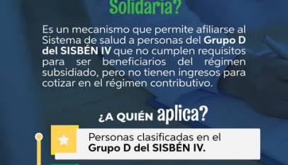 Aún puede estar asegurado en salud gracias a la Contribución Solidaria. Afíliese al Régimen Subsidiado sin necesidad de cotizar al régimen contributivo. Consulte las tarifas 2025, requisitos y puntos de afiliación aquí:https://cajica.gov.co/afiliacion-en-salud/ Contacto:Correo: siac@cajica.gov.coTeléfono: 320 845 0097