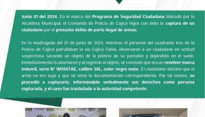 Cumpliendo con la meta 290 de nuestro PDM, llevamos a cabo las campañas preventivas “Hurto a bicicletas” y “Hurto a Residencias” en los sectores El Bebedero, Canelón y Granjitas, bajo el liderazgo de la Policía Nacional de Cajicá. Durante estos encuentros, sensibilizamos cerca de 220 personas, brindándoles recomendaciones de seguridad…