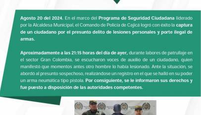 Cumpliendo con la meta 290 de nuestro PDM “Cajicá Ideal”, hemos avanzado en la primera fase de creación e implementación de la Red de Apoyo de Cajicá. En este esfuerzo, la Policía Nacional y la Secretaría de Seguridad y Convivencia se reunieron con 83 representantes del sector empresarial, comercial y…