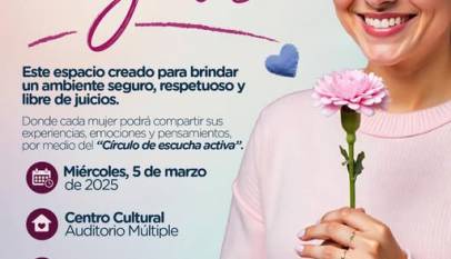 Invitamos a las mujeres cajiqueñas a participar en este espacio diseñado para compartir experiencias, inquietudes y emociones en un ambiente de confianza y apoyo mutuo. Inicio del espacio de escucha: Fecha: Miércoles, 5 de marzo Lugar: Centro Cultural, auditorio múltiple Hora: 5:00 p. m. Cupos limitados Avanzamos con las metas…