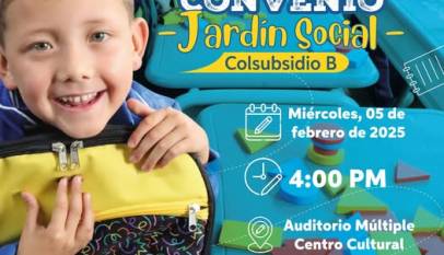 Invitamos a la socialización a los padres de familia cuyos hijos estaban inscritos en el antiguo Jardín Social CAFAM y a quienes desean inscribirlos en el nuevo Jardín Social Colsubsidio para la vigencia 2025. Fecha: Miércoles, 5 de febrero de 2025 Hora: 4:00 p.m. Lugar: Auditorio Múltiple, Centro Cultural Dando…