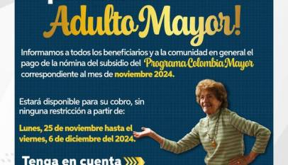El programa del Departamento de Prosperidad Social informa que ya están habilitadas las fechas para los pagos correspondientes al mes de noviembre para los Adultos Mayores beneficiarios. Cumpliendo con la meta 95 del PDM, Cajicá Ideal, la Secretaría de Desarrollo Social, a través de la Dirección de Equidad y Familia,…