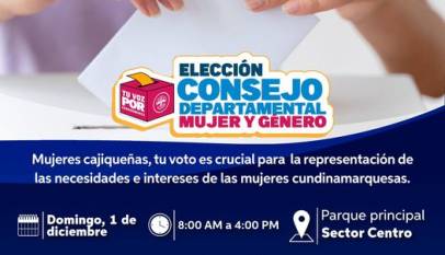 La Gobernación de Cundinamarca, a través de la Secretaría de Equidad y Género, promueve la democracia y participación de las mujeres cundinamarquesas mayores de 14 años, invitándolas a votar y elegir a sus futuras representantes. Fecha: Domingo, 1 de diciembre Horario: 8:00 AM a 4:00 PM Lugar: Parque Principal La…