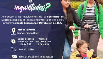 La Secretaría de Desarrollo Social a través de la Dirección de Equidad y Familia, informa a la comunidad cajiqueña los horarios de atención y ubicación del programa Renta Ciudadana y Devolución del IVA, teniendo en cuenta las diferentes solicitudes o inquietudes respecto a los procesos que se realizan en este…