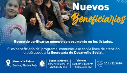 La Secretaría de Desarrollo Social a través del programa Renta Ciudadana, socializa con la comunidad los listados de las personas beneficiarias de este ingreso. En el siguiente enlace podrán realizar su consulta. https://cajica.gov.co/nuevos-beneficiarios/ Si tiene dudas o inquietudes comunicarse o dirigirse a las instalaciones de la Secretaría de Desarrollo Social.