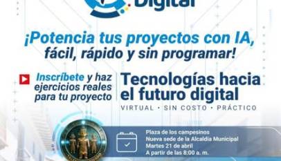Cajicá avanza con herramientas de innovación. Participe en la Gran Registratón y aprenda a aplicar la inteligencia artificial en su negocio o en el campo, sin necesidad de conocimientos en programación. Lo que aprenderá: IA para emprendimiento IA para contenidos digitales IA para el campo y el turismo Modalidad: 100%…
