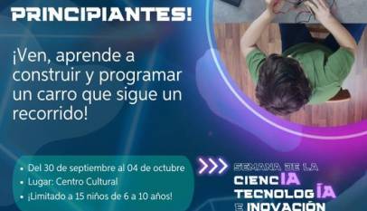 ¡Celebra la Semana de la Ciencia, Tecnología e Innovación! ¿Listo para desarrollar tu creatividad? Aprende a construir y programar un carro que sigue un recorrido con sensores. ¡Transforma tus ideas en realidad! Fechas: 30 de septiembre – 04 de octubre Lugar: Centro Cultural ¡Cupo limitado (solo 15 participantes)! ¡Asegura tu…