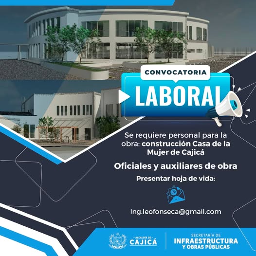 Participe en la convocatoria laboral para la vinculación de personal en el proyecto de construcción de la Casa de la Mujer, una obra orientada al fortalecimiento social y comunitario del municipio.