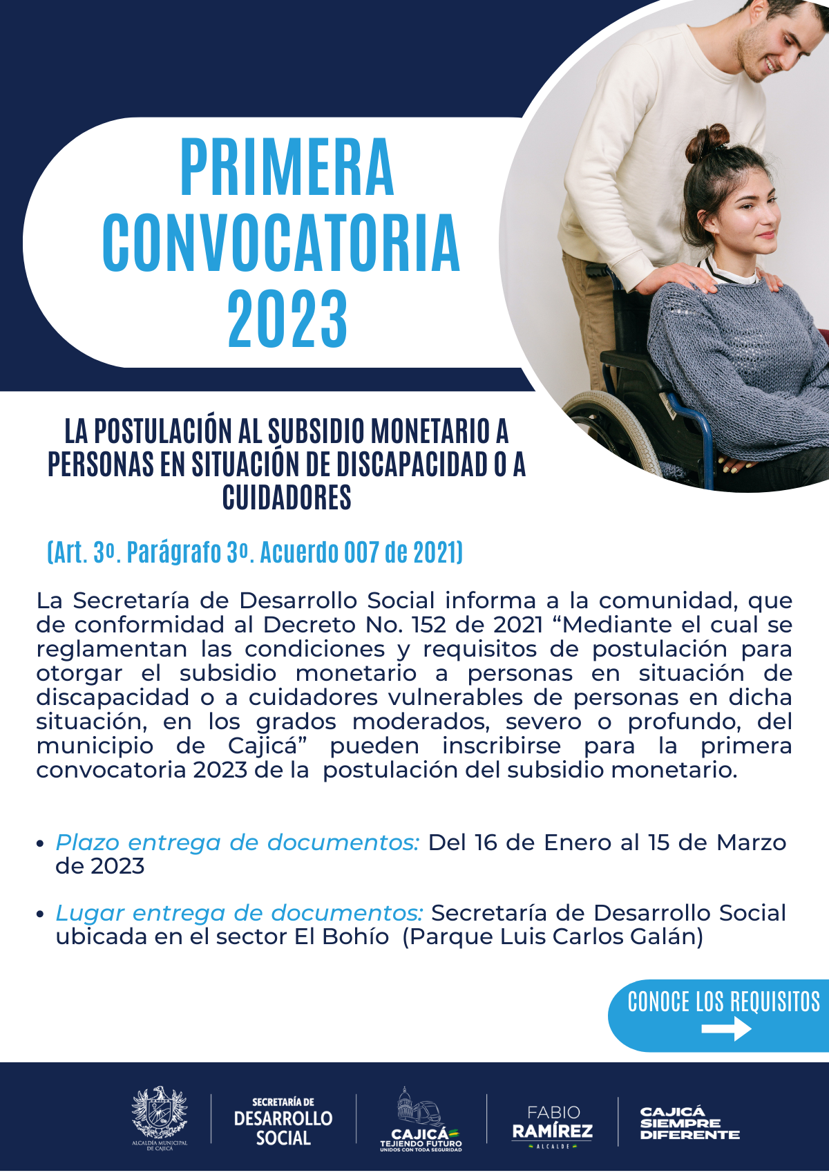 “Mediante el cual se reglamentan las condiciones y requisitos de postulación para otorgar el subsidio monetario a personas en situación de Discapacidad o a cuidadores vulnerables de personas en dicha situación, en los grados moderado, severo o profundo, del Municipio de Cajicá”