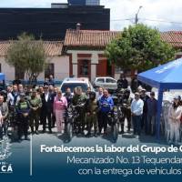 La alcaldesa Fabiola Jacome, a través de la Secretaría de Seguridad y Convivencia, hizo entrega de una camioneta uniformada y cinco motocicletas de 300 cc para fortalecer la labor de las unidades del Ejército que nos acompañan en el territorio.