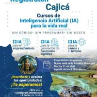 Cajicá avanza con herramientas de innovación. Participe en la Gran Registratón y aprenda a aplicar la inteligencia artificial en su negocio o en el campo, sin necesidad de conocimientos en programación.