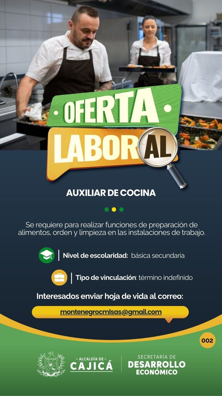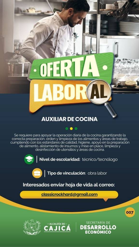 Se requiere personal para apoyar en la preparación y montaje de platos, mantener el orden y limpieza en el área de cocina, colaborar con el equipo en diferentes estaciones, cumplir con las normas de higiene y seguridad alimentaria.