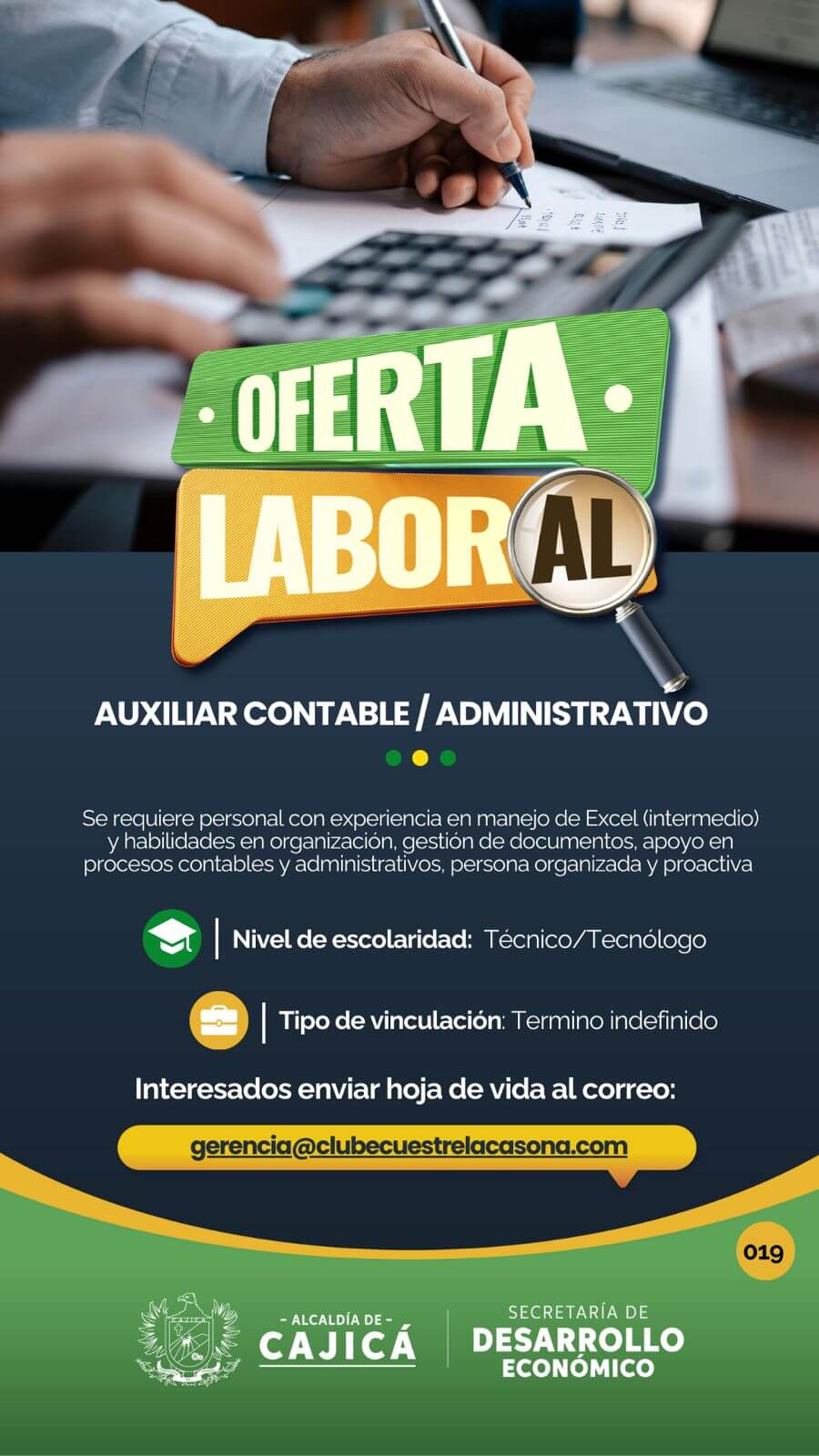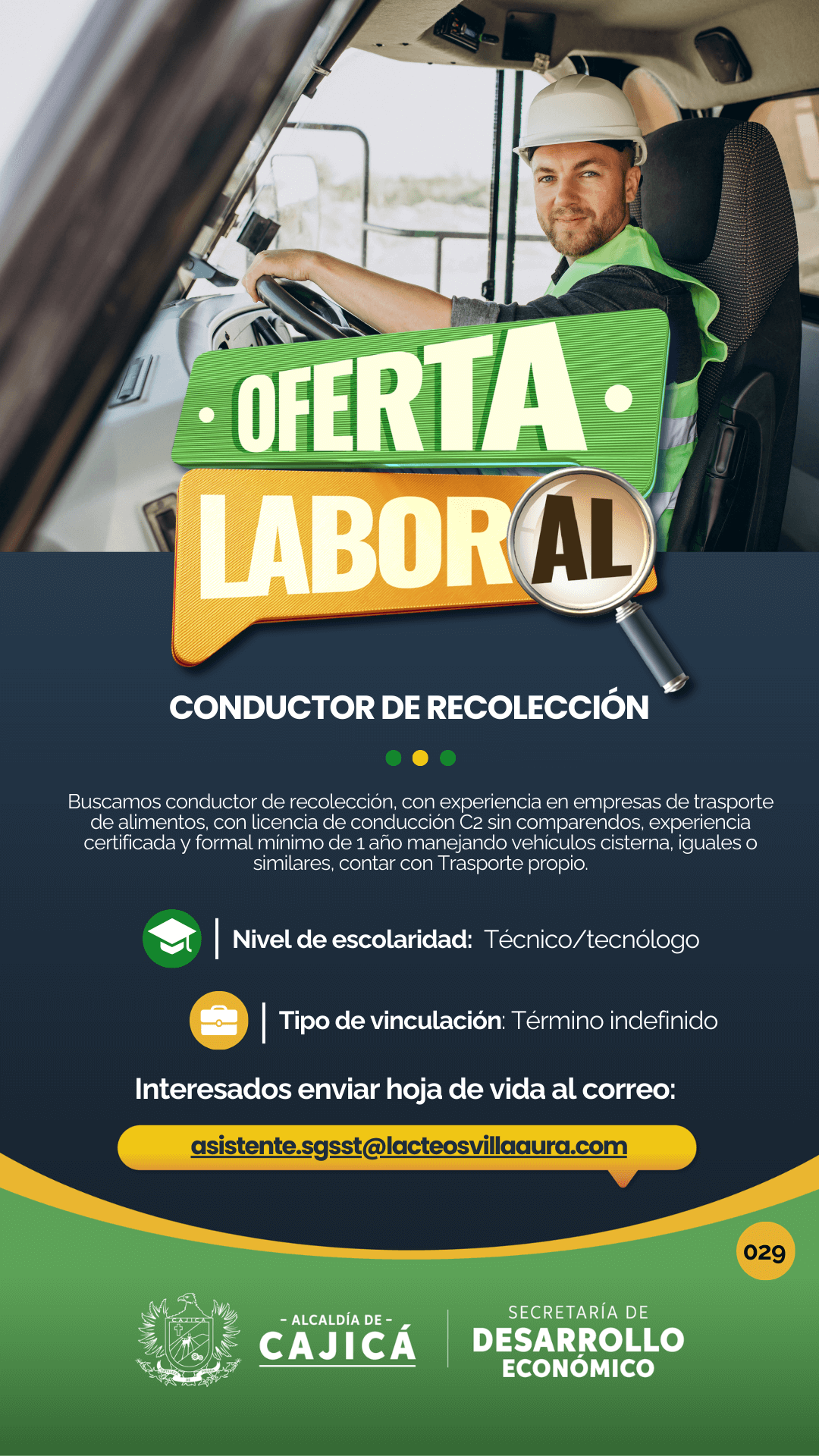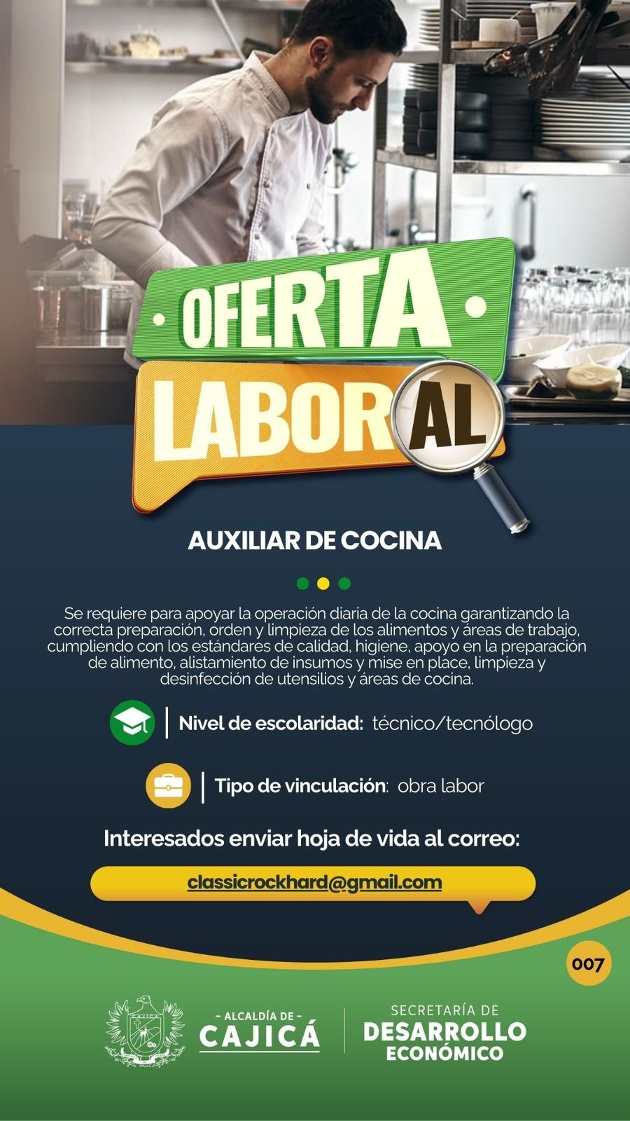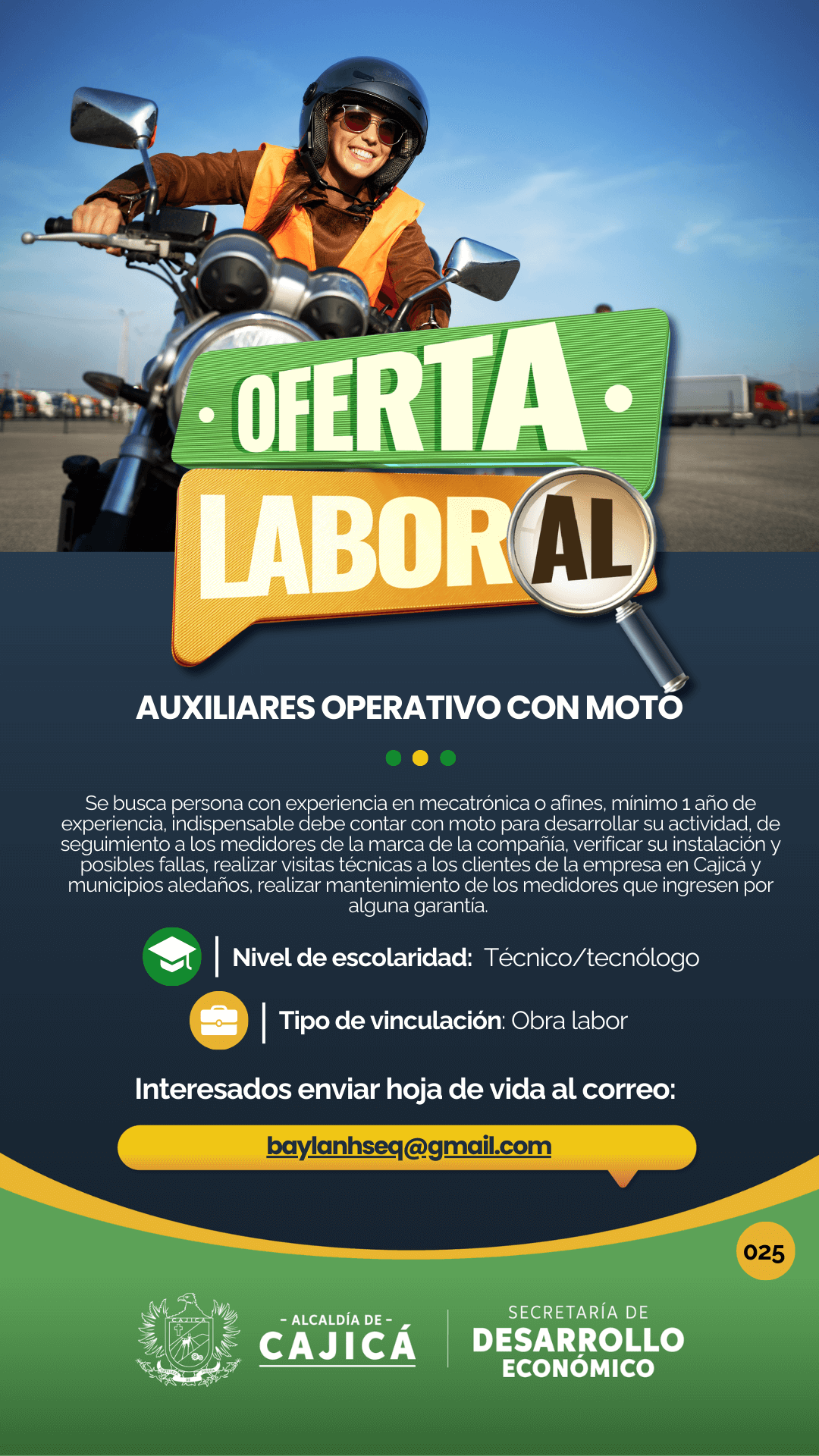 Interesados enviar hoja de vida al correo: